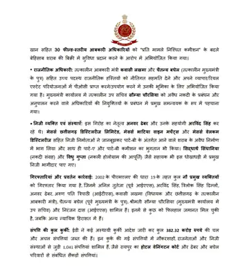 छत्तीसगढ़ शराब घोटाला: निरंजन दास समेत 30 आबकारी अधिकारियों की 38.21 करोड़ की संपत्ति कुर्क, ED की बड़ी कार्रवाई