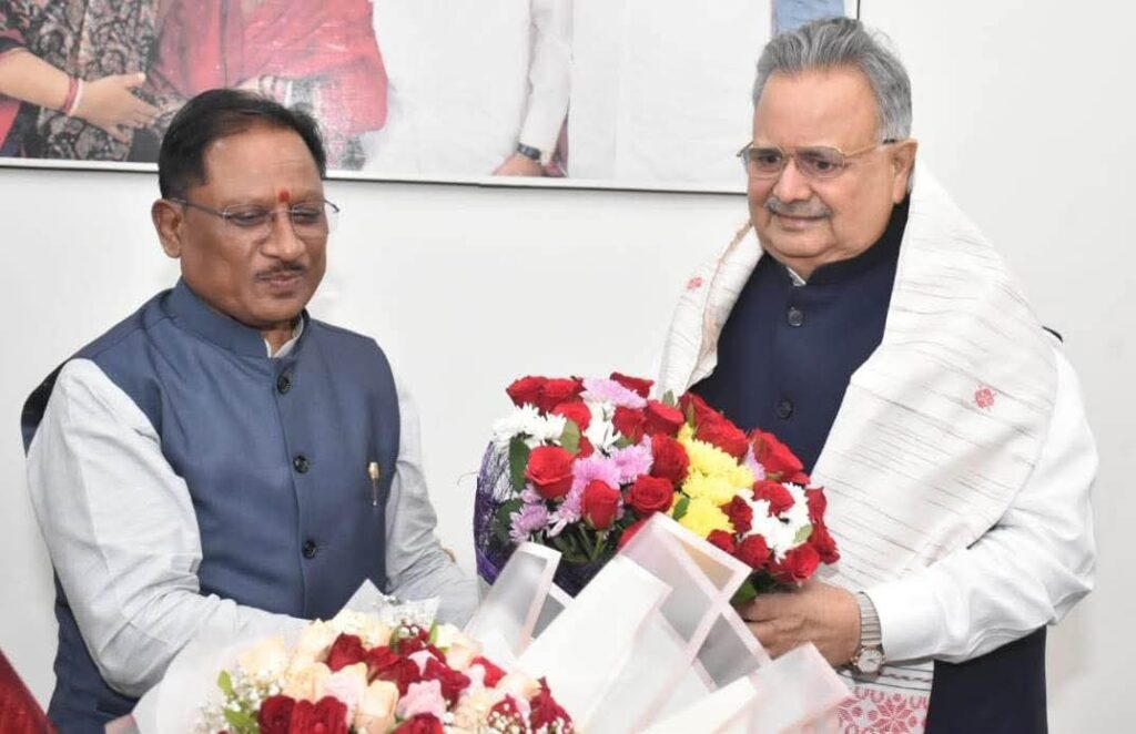राजनांदगांव | मुख्यमंत्री विष्णु देव साय ने आज स्पीकर हाऊस राजनांदगांव पहुंचकर विधानसभा अध्यक्ष डॉ. रमन सिंह को पुष्प गुच्छ भेंट कर उनके जन्मदिन पर हार्दिक बधाई एवं शुभकामनाएं दी।