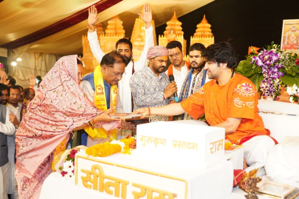 इस अवसर पर छत्तीसगढ़ के मुख्यमंत्री विष्णुदेव साय ने कहा कि छत्तीसगढ़ माता कौशल्या का मायका और प्रभु श्रीराम का ननिहाल है। उन्होंने बाबा पं. धीरेंद्र कृष्ण शास्त्री का प्रदेश में स्वागत करते हुए कहा कि उनके आर्शीवाद से नक्सलवाद पर विजय संभव हो रही है और प्रदेश में विकास की गति बढ़ रही है। मुख्यमंत्री ने यह भी आश्वासन दिया कि गाय को गौमाता का दर्जा देने की प्रक्रिया जल्द पूरी की जाएगी।