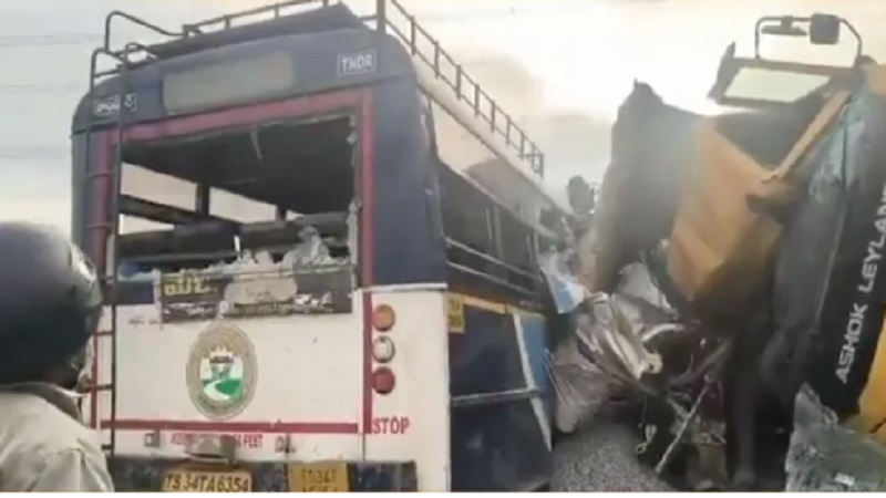 यह हादसा रंगारेड्डी जिले के मिर्जागुडा गांव के पास हैदराबाद-बीजापुर राजमार्ग पर रविवार सुबह करीब साढ़े छह बजे हुआ। तेलंगाना राज्य सड़क परिवहन निगम की बस तांडूर से हैदराबाद जा रही थी, जिसमें करीब 70 यात्री सवार थे। इसी दौरान गलत दिशा से आ रहे कंक्रीट से लदे ट्रक ने बस को सामने से टक्कर मार दी।