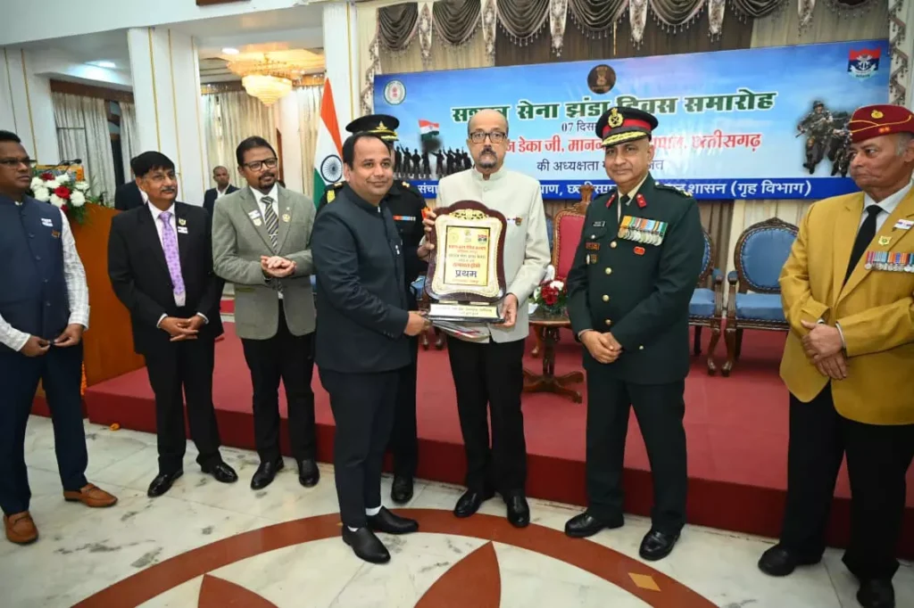 समारोह में राज्यपाल ने शहीदों की वीर नारियों, माताओं और आश्रितों को सम्मान राशि और शॉल भेंट कर सम्मानित किया। साथ ही वीरता अलंकरण प्राप्त सैनिकों तथा झंडा दिवस के अवसर पर विशेष योगदान देने वाले दानदाताओं को भी सम्मानित किया गया। अपने उद्बोधन में राज्यपाल डेका ने बताया कि झंडा दिवस निधि से लगभग 27 महत्वपूर्ण कल्याणकारी योजनाओं का लाभ पूर्व सैनिकों और आश्रित परिवारों को मिल रहा है। उन्होंने कहा कि छत्तीसगढ़ सैनिक कल्याण बोर्ड और गृह विभाग के सहयोग से वेटरन्स की उत्कृष्ट देखभाल सुनिश्चित की जा रही है।